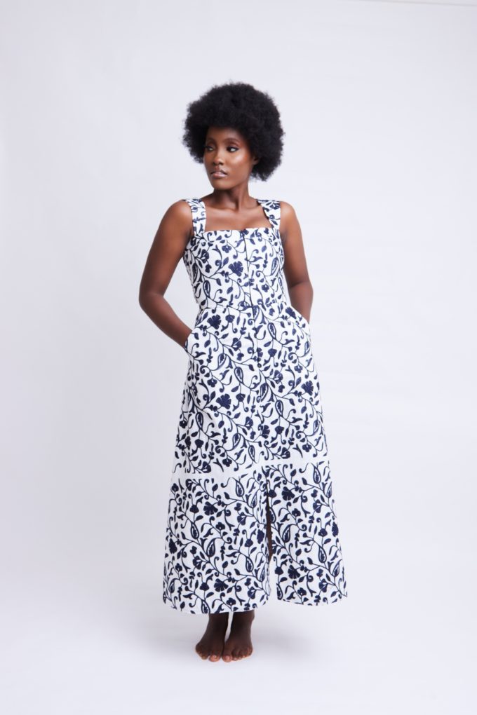 DRESSESThis linen fabric with beautiful floral embroidery screams special. The ‘Tolu’ midi dress is the perfect all round dress. Wear with gorgeous heels to an outdoor summer wedding or slip on a pair of jeweled sandals for dinner in your favorite city.